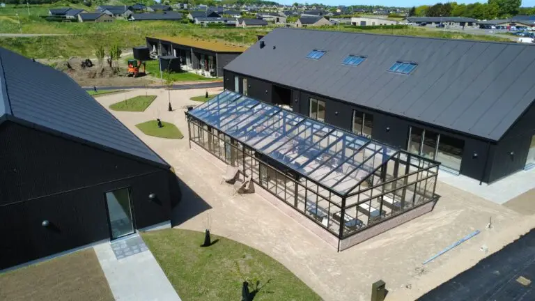 Mellem de to fælleshuse i Kronhjorten finder du Vinterhaven – et sted, der emmer af ro og hygge. Her kan du nyde lyset og naturen året rundt, uanset vejret udenfor. Orangeriet, Vinterhaven, lægger op til at blive fyldt med planter og blomster, og det er det perfekte sted at trække sig tilbage med en god bog, drikke en kop kaffe eller mødes med naboerne til en uformel snak. Det er også et oplagt sted for de grønne fingre, der elsker at dyrke blomster, krydderurter og grøntsager i fællesskab.